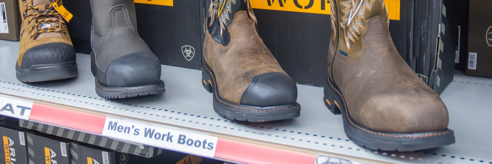 Work wear, coveralls, hi-vis, jeans, cowboy boots, muck boots, winter clothing, caps, and gloves for farm and ranch life.
